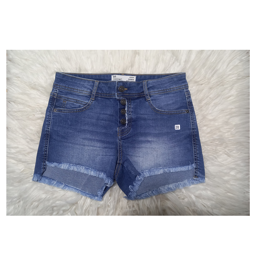 Distressed Button-Fly Denim Shorts Add a touch of edgy style to your wardrobe with these distressed button-fly denim shorts. Featuring a trendy mid-rise waist and a modern raw hem, these shorts offer a comfortable fit that’s perfect for casual wear. The distressed detailing along the hem gives a cool, lived-in look, while the button-fly closure adds a vintage vibe. Made from durable denim, these shorts are perfect for pairing with a casual tee or a chic blouse for a laid-back summer look.