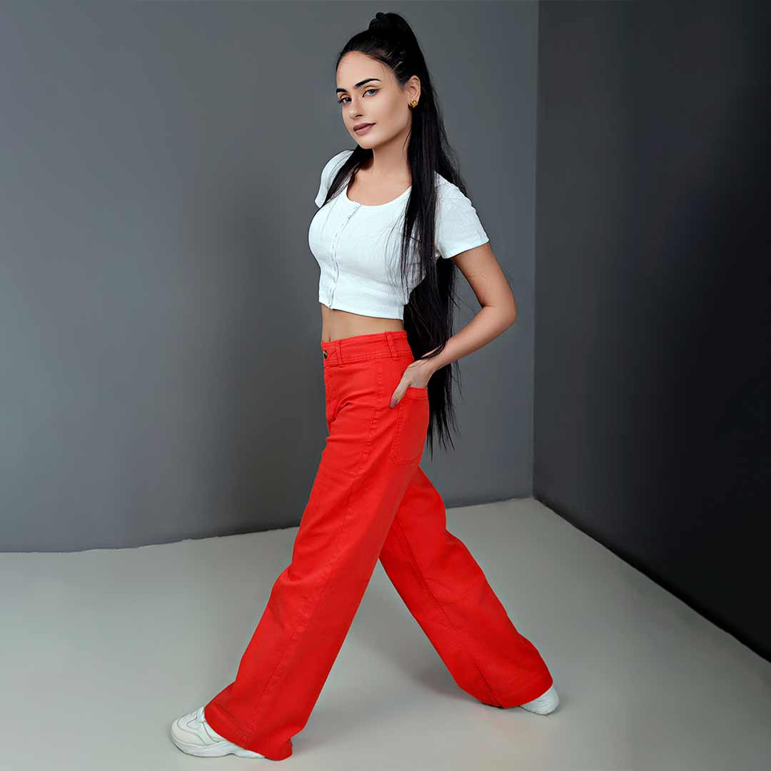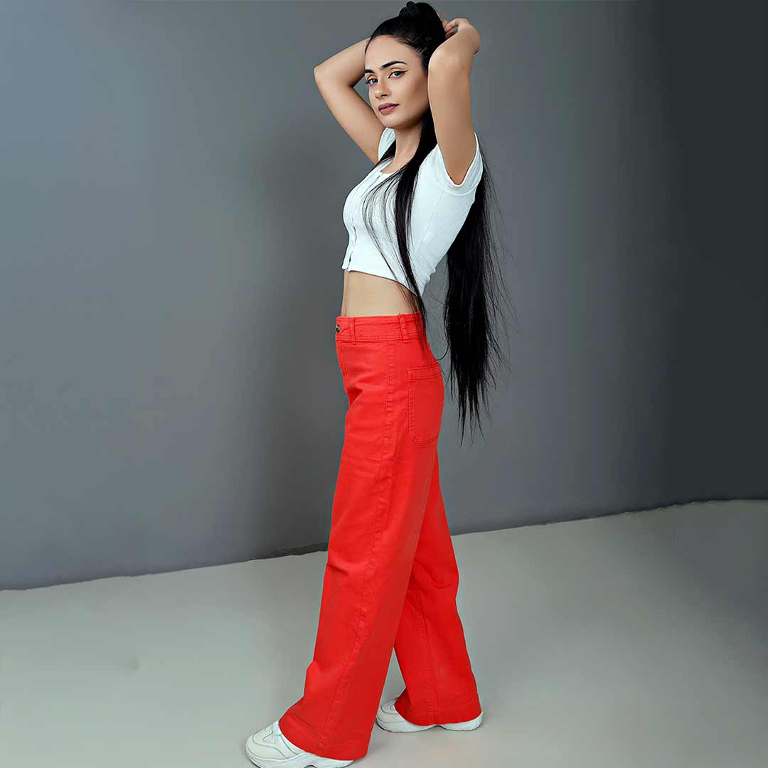 Step into the spotlight with our Vibrant Orange Wide Leg Jeans, the perfect blend of daring style and effortless comfort. Crafted from high-quality, breathable denim, these jeans are designed to make a statement. The wide leg cut provides a flattering silhouette that elongates your legs, while the vibrant orange hue adds a pop of color to any outfit.